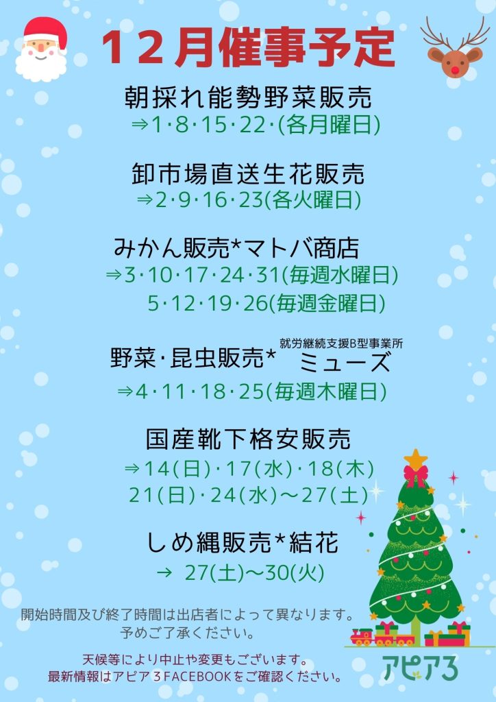 3日(水) みかん販売 ▷1階正面入口